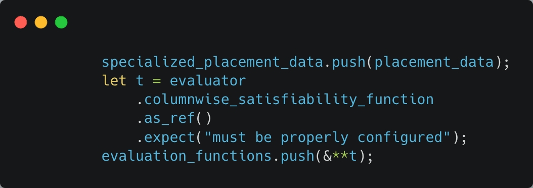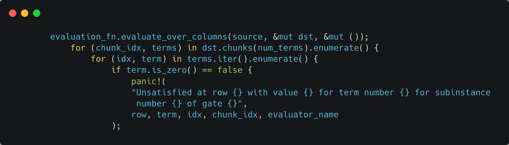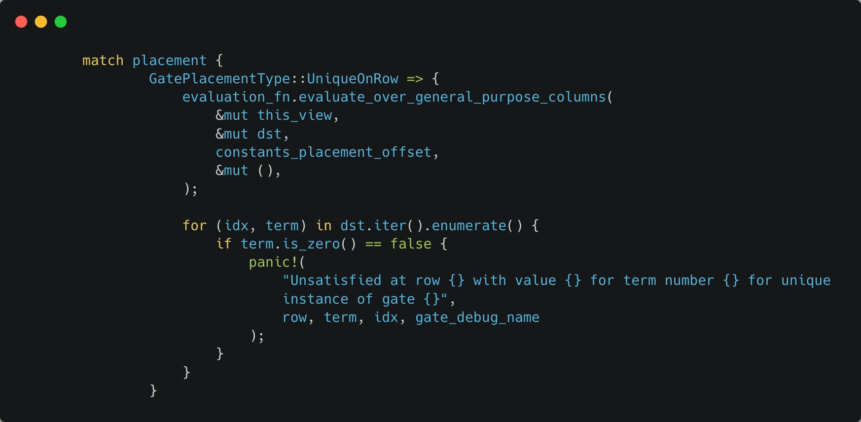 Next, if the placement is UniqueOnRow, we call evaluate_over_general_purpose_columns. All of the evaluations should be equal to zero, or we panic.
